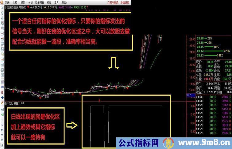 一个原创指标,可以优化任何指标的好指标,把你手上的指标再优化的好指标,只要在优化区域内加上趋势或其他发出信号的指标就能一路持有。