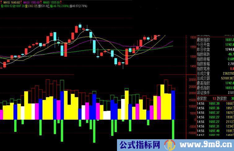 巨量绿,蓝烛长,趋势破,急离场;等着跌,莫手痒。