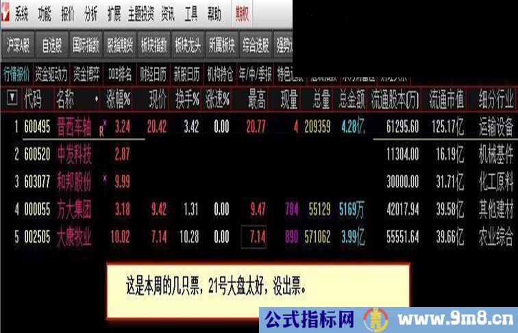 筛选方法:对于选出的票,按通达信的“细分行业”排序,同一板块出票多的为宜,从中再选就OK了。