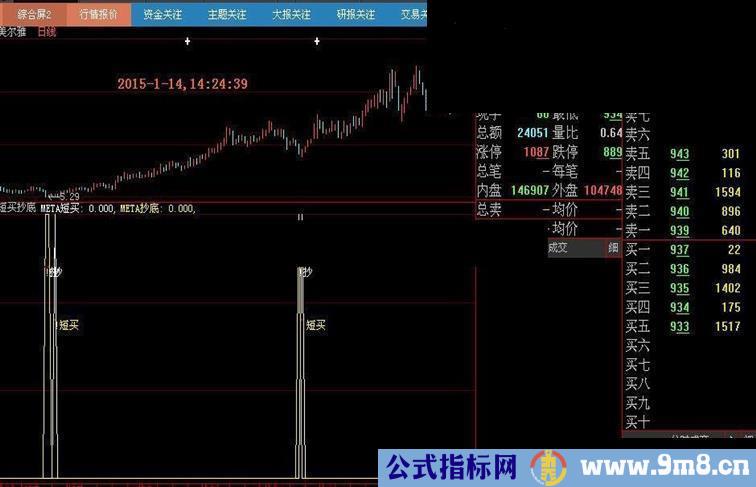 META抄底:(CCI14<-200 OR J<0 OR C DRAWTEXT (META抄底,0.8,'!抄'); DRAWTEXT (META短买,0.6,'!短买'); 当前大盘和个股都在下跌调整之中,很多人都忍不住抄底买入,但发现一买就套。因此,适当的抄底指标是非常必要的,这是一个我多年来使用的一个短中长线操作指标,不含有任何未来函数,也没有使用任何未来数据,信号因此不会漂移。 该指标适用于通达信和大智慧软件,下载源码后新建公式就可以使用。