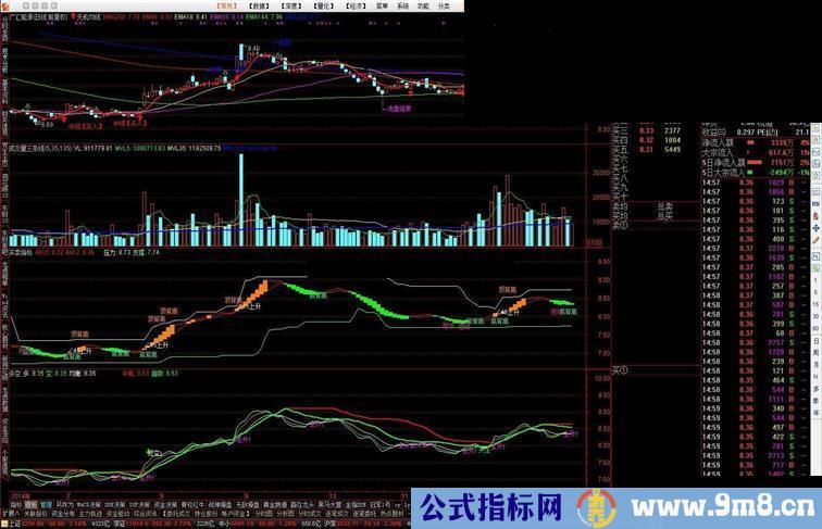 支撑:MA(REF(LLV(C,30),1),2),COLORABFF46; AA1:=AMOUNT/V;BB1:=L