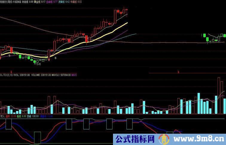 椤跺嘲:IF((瓒嬪娍-VAR6>85),95,100),COLORF0F000; 榛勯噾鍖?DRAWICON(IF(VAR13<15,15,0),13,1),COLORYELLOW; 鎿嶇洏绾? MA(3*SMA((C-LLV(L,27))/(HHV(H,27)-LLV(L,27))*100,5,1)-2*SMA(SMA((C-LLV(L,27))/(HHV(H,27)-LLV(L,27))*100,5,1),3,1),5),LINETHICK2,COLORBLUE; STICKLINE(FILTER(瓒嬪娍75 OR CROSS(瓒嬪娍,鎿嶇洏绾?AND 瓒嬪娍REF(C,1) OR 瓒嬪娍>REF(瓒嬪娍,1)AND 瓒嬪娍<35 AND C>REF(C,1),5),5,50,9,2),COLOR00FF00;