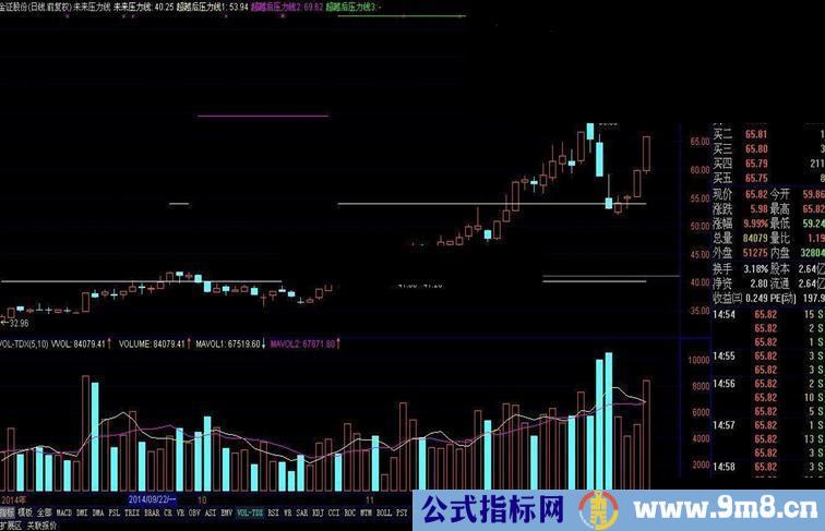 超越后压力线1:IF(C>未来压力线,CONST(POW(SQRT(未来压力线)+1,2)),IF(C>未来压力线 AND CURRBARSCOUNT<10,CONST(POW(SQRT(未来压力线)+1,2)),DRAWNULL));