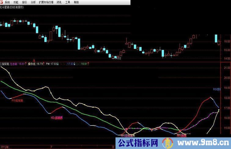 DRAWTEXT(B1> 0,L-0.02,'MACD底背离'),COLOR00FFFF;{MACD底背离}