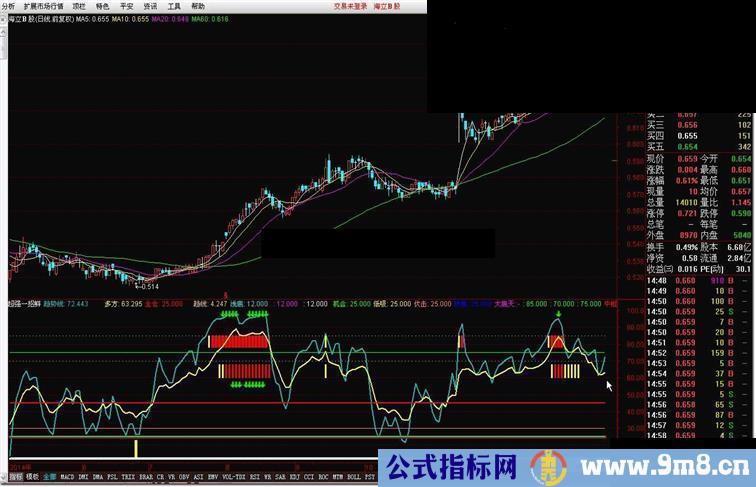 下线:=IF(AAA 中线:=IF(AAA HD:=HIGH-REF(HIGH,1); LD:=REF(LOW,1)-LOW; 趋势:=3*SMA((CLOSE-LLV(LOW,27))/(HHV(HIGH,27)-LLV(LOW,27))*100,5,1)-2*SMA (SMA((CLOSE-LLV(LOW,27))/(HHV(HIGH,27)-LLV(LOW,27))*100,5,1),3,1); DDK:=DRAWICON(趋势<=3 AND 趋势强度<=1,63,1); C1:=((MA(C,30)-L)/MA(C,60))*200; 临界点:=IF(C1>30,68,45),LINETHICK3,COLORRED; VR2:=REF(LOW,1); VR3:=SMA(ABS(LOW-VR2),3,1)/SMA(MAX(LOW-VR2,0),3,1)*100; VR4:=EMA(IF(CLOSE*1.3,VR3*10,VR3/10),3); VR5:=LLV(LOW,30); VR6:=HHV(VR4,30); VR7:=IF(MA(CLOSE,58),1,0); 主力:=EMA(IF(LOW<=VR5,(VR4+VR6*2)/2,0),3)/618*VR7,COLORMAGENTA,NODRAW; VR9:=IF(主力>100,100,主力); 主力进场:=STICKLINE(VR9>0,0,VR9,3,0),COLORMAGENTA;
