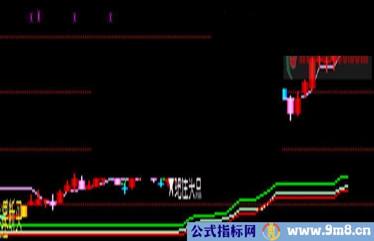 DRAWTEXT(((CROSS(MA20,压力位) AND (LOW <= MA20)) AND ((MA20 - REF(MA20,1)) > 0.02)),(LOW - 0.03),'★绝佳买点'),COLORFFF0FF;