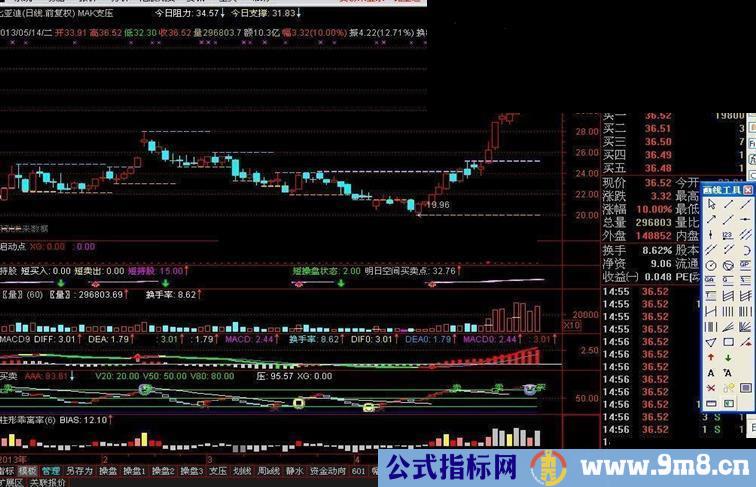 BIAS:(CLOSE-MA(CLOSE,L1))/MA(CLOSE,L1)*100,NODRAW,COLORWHITE;