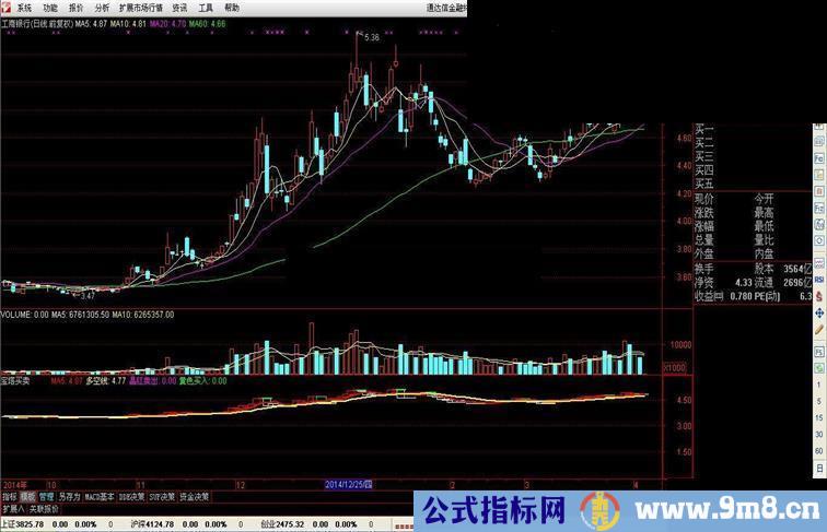 MA5:ma(c,5),COLORRED,linethick2; x:=(3*c+l+o+h)/6; 晶红卖出:var1A,linethick0,COLORFF50FF;