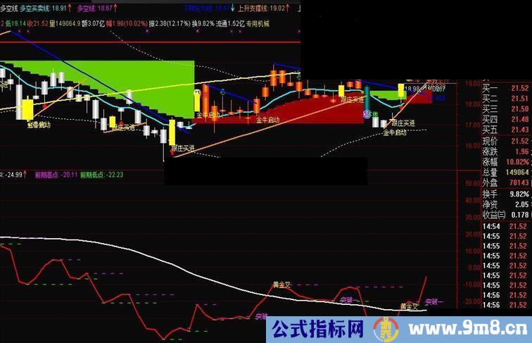 DRAWTEXT(CROSS(ASI,MASI) AND C/REF(C,1)>1.04,ASI,'黄金叉'),COLORYELLOW;