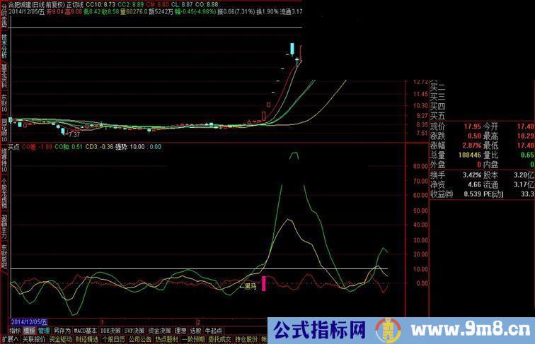用法:1:黄线大于绿线基本都是短线底部,k线往上走势,出现黑马的位置如果出现大幅上涨拉升,量能放大现象,牛股就在眼前;