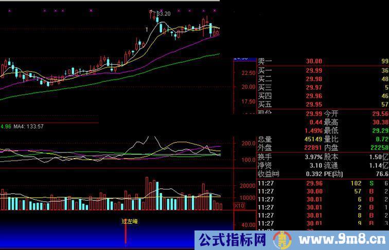 DRAWTEXT(CURRBARSCOUNT=CONST(SJ)+2,45,'过左峰'),COLORYELLOW;