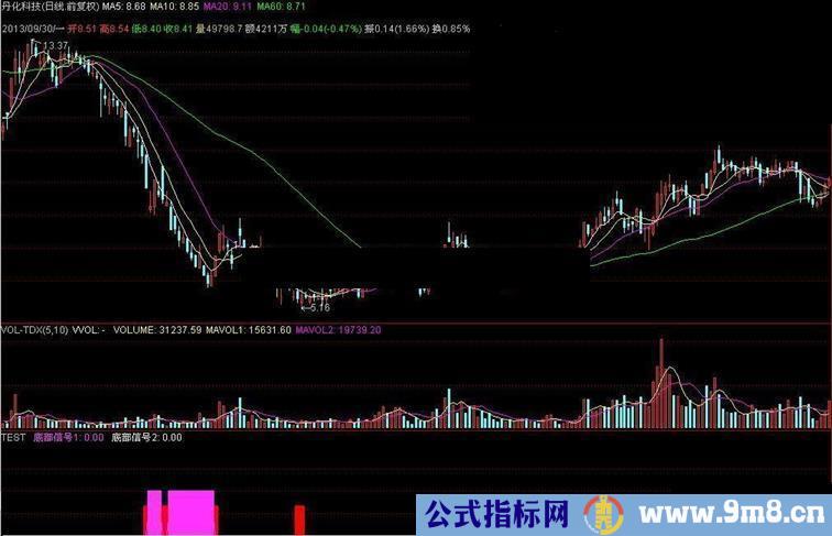 底部信号1:IF(乖离<-18,3,0),COLORFF35FF,LINETHICK1;