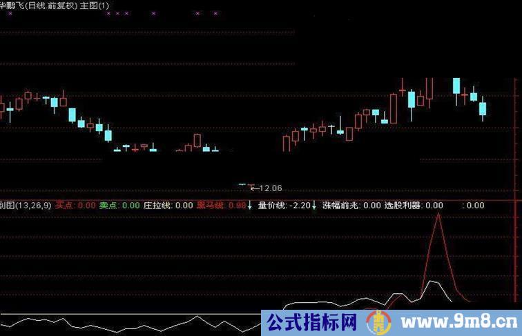 黑马线: IF( VAR28>0.1,VAR29,0)*5, COLORRED;