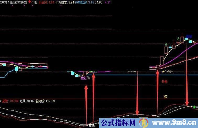 刚才发帖忘了说,该指标可做幅图,也可做选股,选股时选择超短线上穿短线或超短线上穿趋势线,棒棒的。