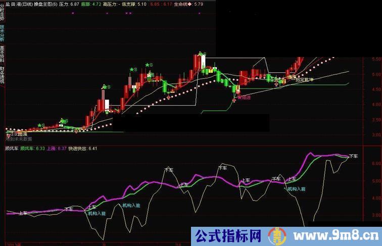 上涨: IF(VAR1>顺风车,VAR1,顺风车),LINETHICK3,COLORMAGENTA;