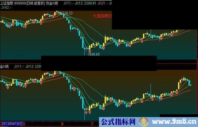 {特注,此公式为【仿金K线】,虽略有差异,差异不大,可以替用【金K线】}
