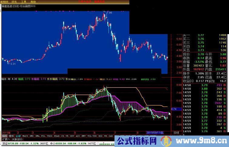长箱顶:HHV(MA((HIGH),6),60),COLORRED,LINETHICK1;