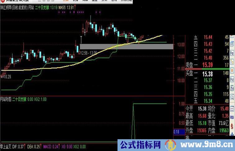 二十日支撑:REF(LLV(C,20),1) COLORGREEN;
