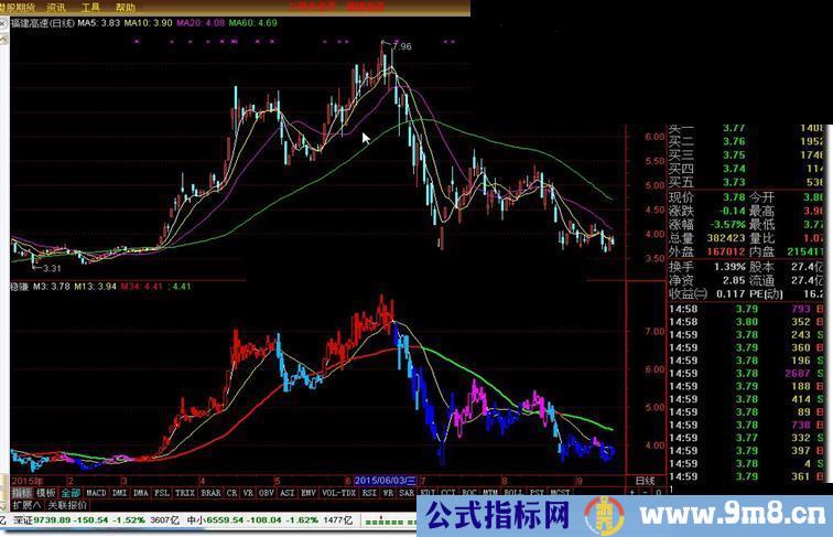 M3:MA(CLOSE,3);M13:MA(CLOSE,13);M34:MA(CLOSE,34),COLORRED,LINETHICK2;