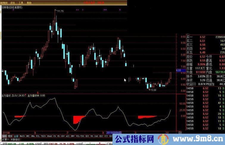 STICKLINE(主力潜伏中,0,MACD*30,8,0),COLORRED;