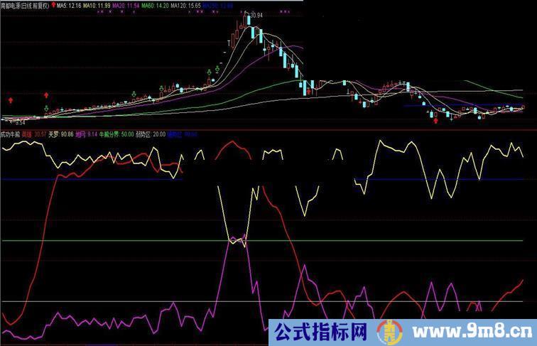1、[英雄]线值低于20,表示股票走势很弱。