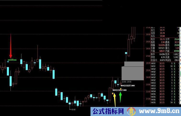 DRAWTEXT(CROSS(7.1,RSI) AND MA(V,10)>MA(V,5),H*1.04,'■■■逃跑■■■'),COLORGREEN;