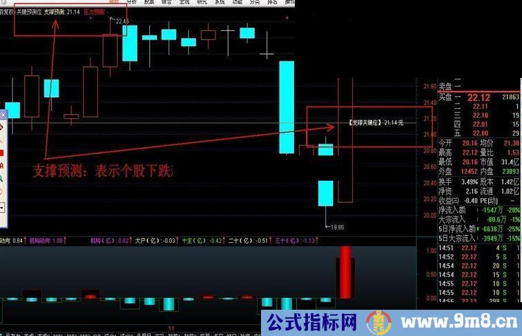 DRAWTEXT(ISLASTBAR,压力预测,STRCAT(' 【压力关键位】 ',STRCAT(CON2STR(压力预测,2),' 元'))),COLORFFFFFF,LINETHICK1;