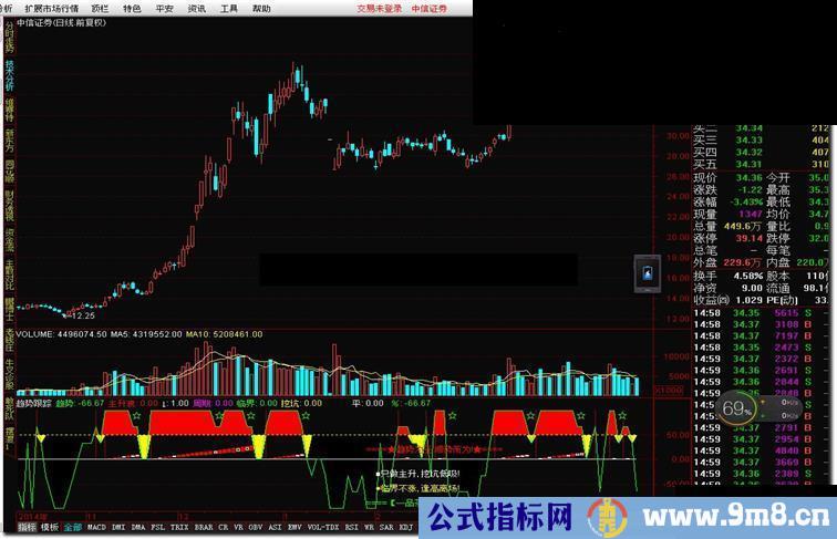 WKQY:=BARSLAST(CROSS(50,趋势)) 挖坑:BETWEEN(趋势,-1,50) AND WKQY,COLOR00FFFF,POINTDOT,NODRAW; {以下设置副图显示方式} DRAWBAND(趋势,RGB(250,0,0),50,RGB(0,0,0)); AA:=IF(挖坑,趋势,50); DRAWBAND(50,RGB(250,250,0),AA,RGB(0,0,0)); STICKLINE(主升浪,周期*0.8,周期*0.95,3,0),COLOR0000FF; STICKLINE(主升浪,周期*1.05,周期*1.2,3,0),COLOR0000FF;