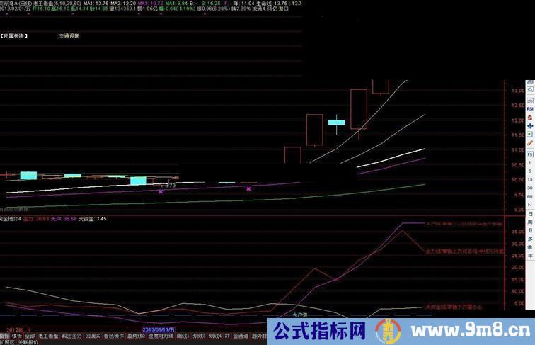 DRAWTEXT(ISLASTBAR AND C,VB,' 大资金线:零轴下方需小心'),COLOR0000BB;