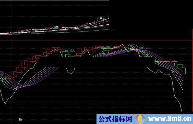 DRAWTEXT(CROSS(A1, AA) AND REF(AA,1)>80, REF(AA,3), '☆闪人'), COLORCFB53B ;