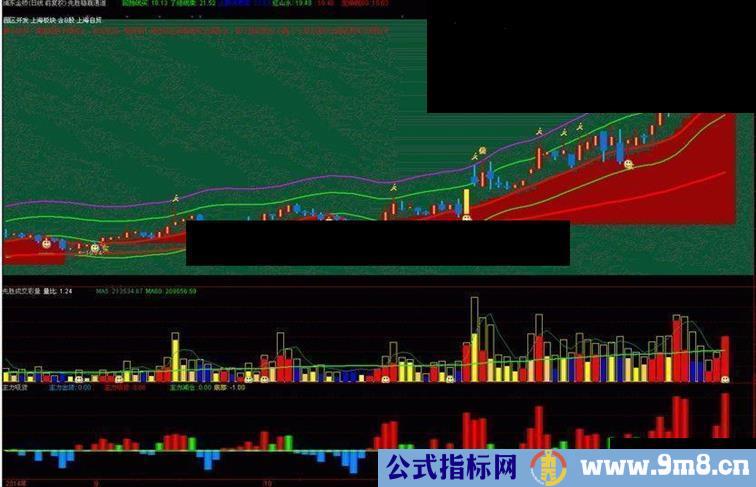 红山水:MA(MA(CLOSE,5),8),LINETHICK2,COLORGREEN;