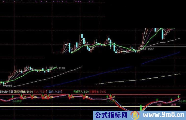 DRAWTEXT(CROSS(主力,75) AND 散户<主力,67,'小心被套'),LINETHICK2,COLOR009900;