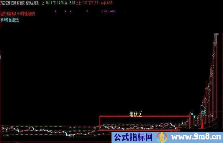 IF((下 > REF(下,1)),下,DRAWNULL),COLORRED,LINETHICK2;}