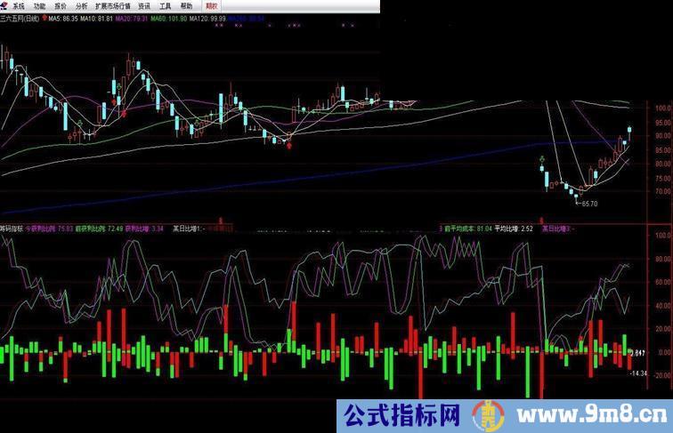 今获利比例:WINNER(C)*100*VAR1,COLORFF00FF,LINETHICK1;