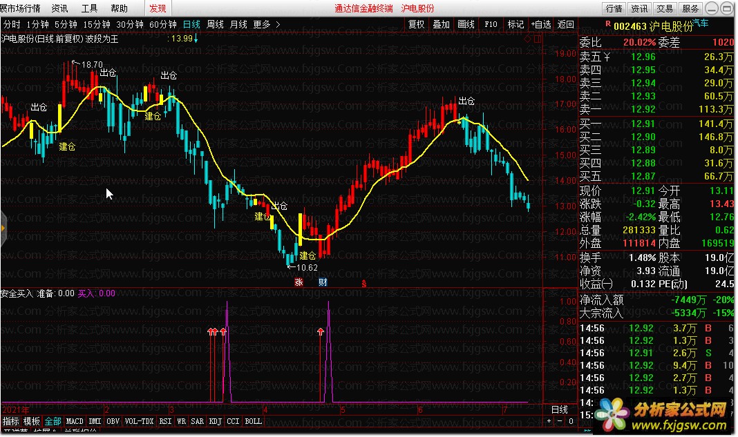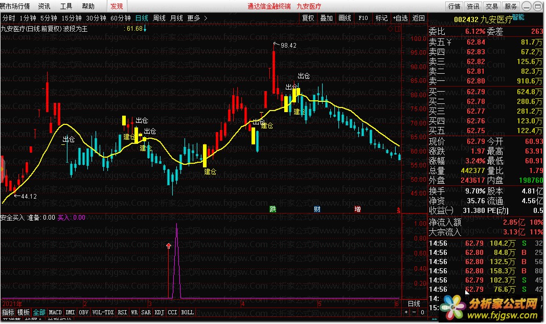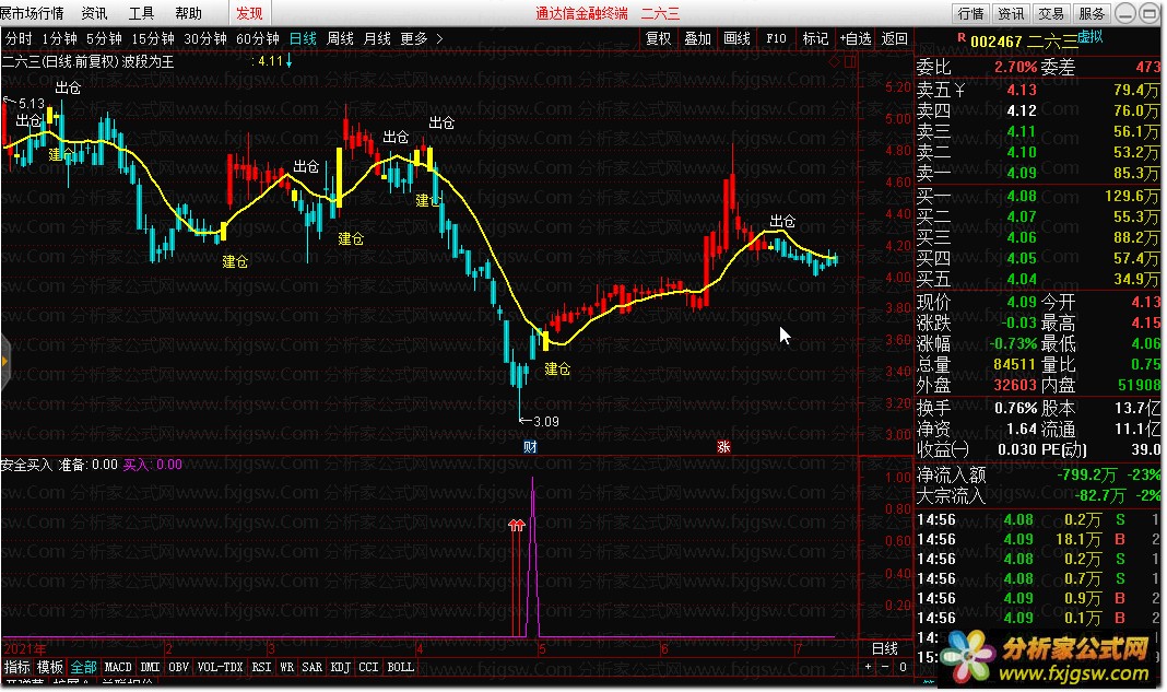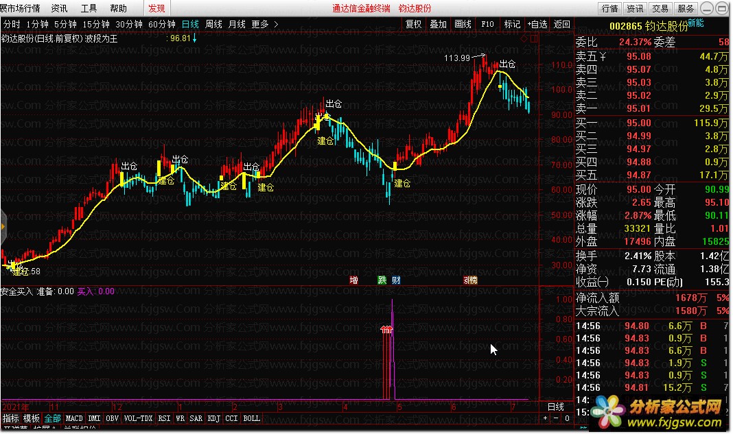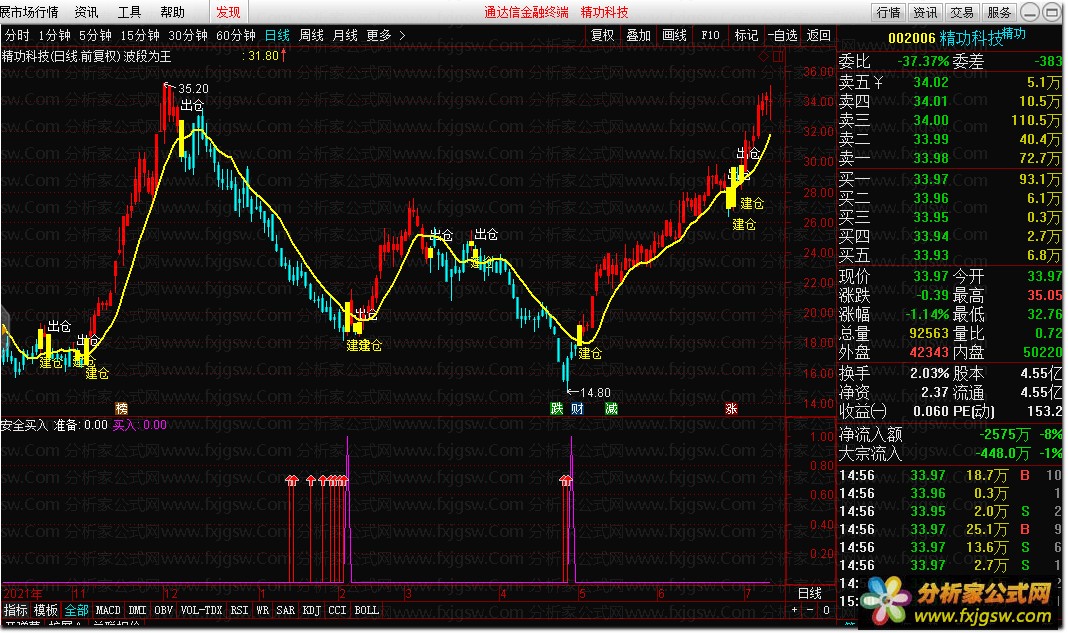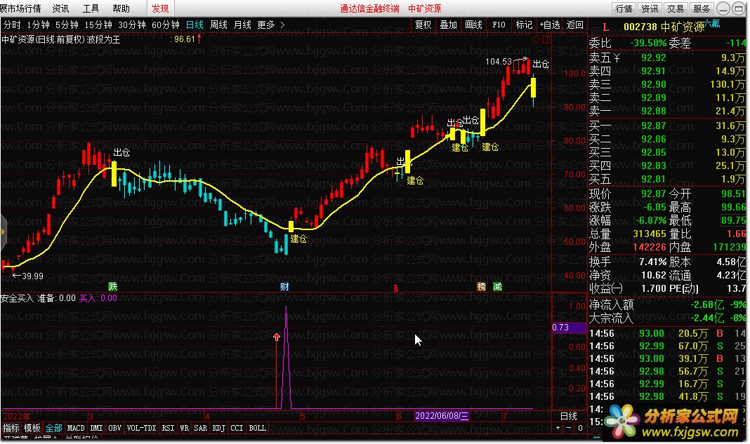 本公式附件里有源码。 截图是编辑公式过程中随机的,并非挑选,成功率看图即可。 也可下载后,自己翻一番,看看成功率怎么样。 此公式并不是抓大牛股的,而是根据交易数据,找到底部安全买点的公式。可以结合主力资金,找涨势可能好的股票。 也适合新股民,原因是买在低位,几乎没有下跌的位置了,因此买入相对安全,只需要你耐心等待。 使用方法: 买入信号出现后,无论涨跌多少,甚至买入是红柱,下午又变为跌势蓝柱的都不要紧,耐心等待,涨高后卖出。 收盘买,收盘卖 10个点止盈止损 能有70%的胜率!!! 已经很牛逼了.回撤有点大.不过通过调整参数应该可以优化一下.毕竟指标也不是无脑买入,还是要看各种情况 ![]() 下面的截图是 通达信版本的截图,东方财富版本的有微小差别,但是基本差不多,图片就参考吧。