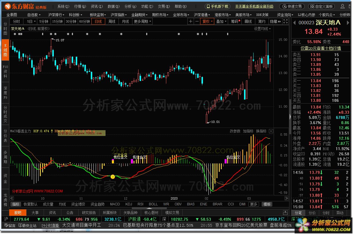 2020.8月份 MACD看透主力(东方财富通指标 副图 测试图)低位金叉 背离