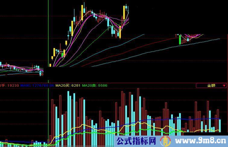 指标上上面的蓝色线是九十日均线,成交量大于九十日均线成交才会活跃。下面的黄色线是二十日主动买入线(主买线),再下面的蓝色线是二十日主卖线。如果黄色线开始大于蓝色线,主力可能开始动作,放大量时尤其要注意二十日是否主买大于主卖,防止买到高位。有的线是用来做选股条件的。