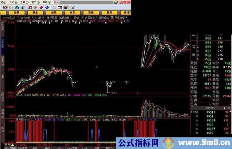 4、盘中把握:买点设定为黑白买点,盘中股价打到黑白买点位置即会出现低买信号,---注意尽量买在黑白买点附近,盘中切记不可追涨!