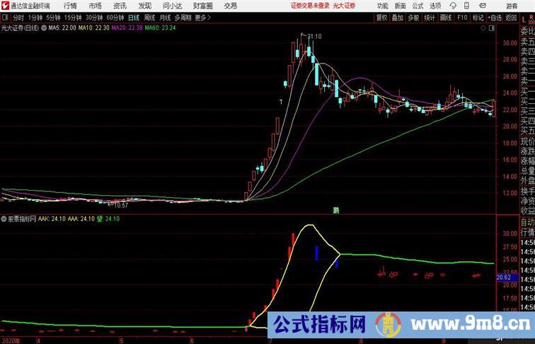 望:IF(AAK=AAA,AAK,DRAWNULL),COLORGREEN,LINETHICK2;