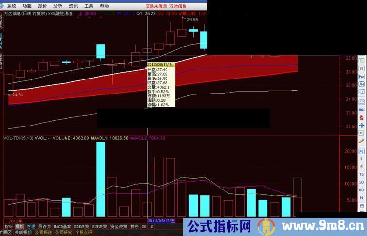 突破上轨:CROSS(C,上) AND V>1.2*REF(V,1) ,NODRAW,COLORRED;