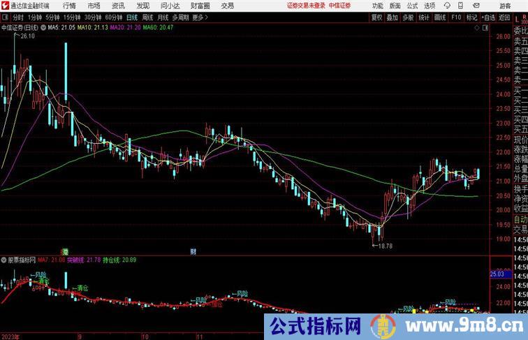 趋势线:=(MA(操盘线,5)),COLORGREEN,LINETHICK2;