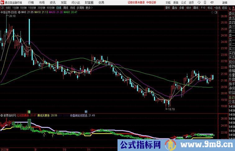 黄线买要涨:IF(C< B,C,B),COLORYELLOW,LINETHICK3;