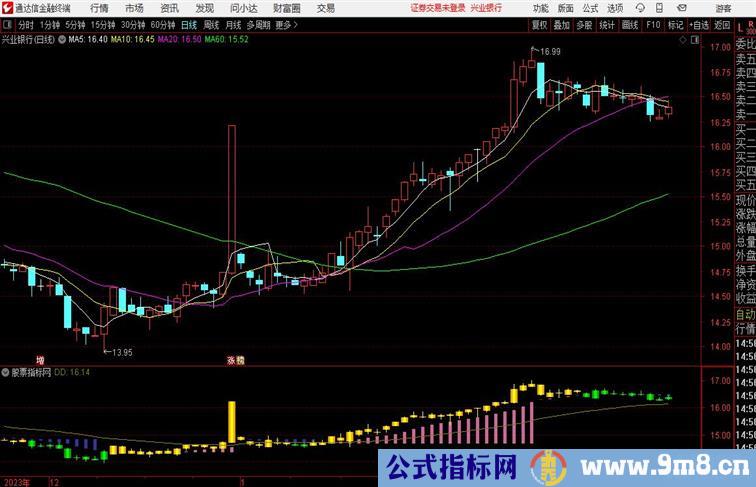 STICKLINE(A1>=A2,O,C,0.1,0),COLOR00FFFF;