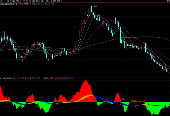 DRAWTEXT(DLB<-4.9 AND ZDFD>=5.9,净流入,'----跑'),COLORGREEN;