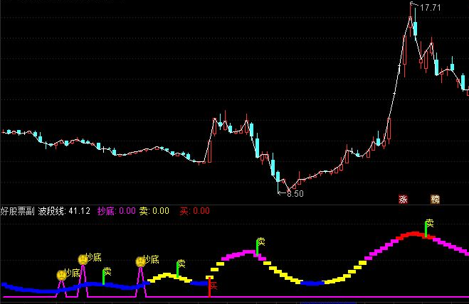 抄底:IF(CROSS(波段线,8) OR CROSS(波段线,15),波段线*3.0,0)