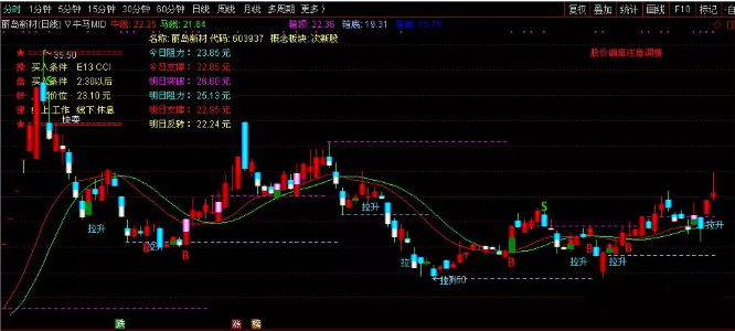 牛马线出现B点,最好在看下午2.30分的时间,这时信号基本稳定,但也不必急着追涨进入,一般B点出现,是这因为股涨起来,信号才出,多数公式也是这样,这时追涨进入,第二天回调账户上就显得亏了,这时心态都坏了,那么最好的方法是下午2.30分B点出现的股,把它放到自选股中,留第二天早盘股价回调时才进入较好。