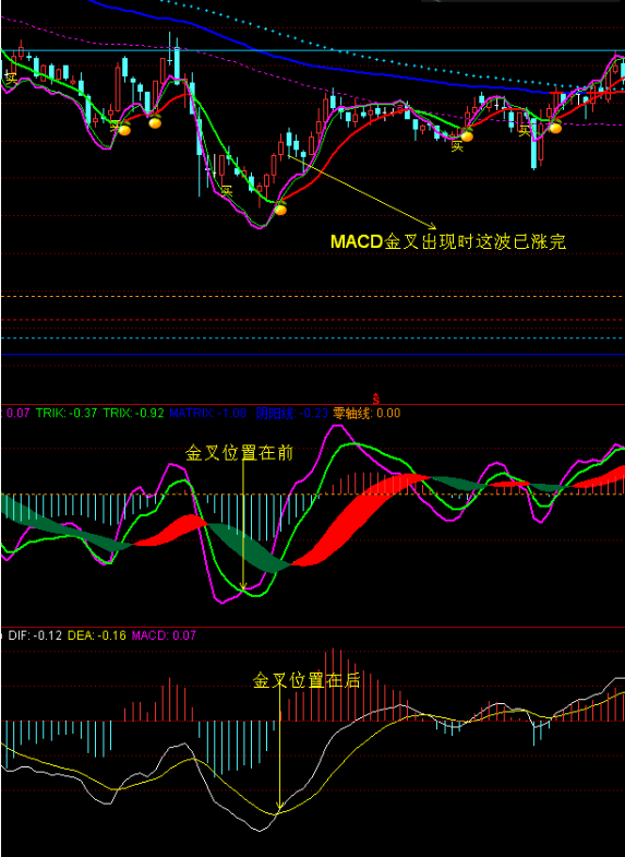 MACD作为一个非常优秀实用的指标经久不衰,是有它的义意的,很多牛股都是从MACD即将金叉前第一个涨停开始的,可原生MACD最大一个缺点就是钝化和滞后,不能让你在第一时间进入关注和预警,就在很多人观望等待时(未进入金叉),就已经涨了很多了或已涨停了,让你进退两难。再就是在波段顶部时股价已经下跌很多了,而它还在 望天 ,滞后有时让人难以忍受......因此,我根据原生MACD这几大缺点,经过反复思考与验证,写出了《廷进MACD》,这也是我在理想论坛的用户名,她可以说解决了原生MACD钝化滞后的问题,可以把介入点在原生MACD基础上提前三天以上,而且指标特性跟原生MACD一致。特别是在小级别时间段如5分钟、15分钟走势上也不会变形。再一个就是通过指标的两次验证(红绿带和红蓝柱),让你下手更放心,打消了你拿捏不准的盲目感,还可以让谨慎派搭上未班车。虽然《廷进MACD》与原生MACD在写法上完全不同,但其指标特性是一致的,这一点请坛友们验证,尽可放心使用。