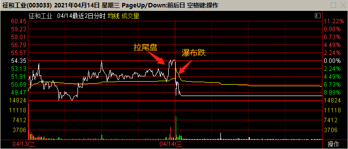 其三,连续两三次尾盘拉涨停,或者隔日开盘瀑布下跌,有极大概率出货嫌疑。