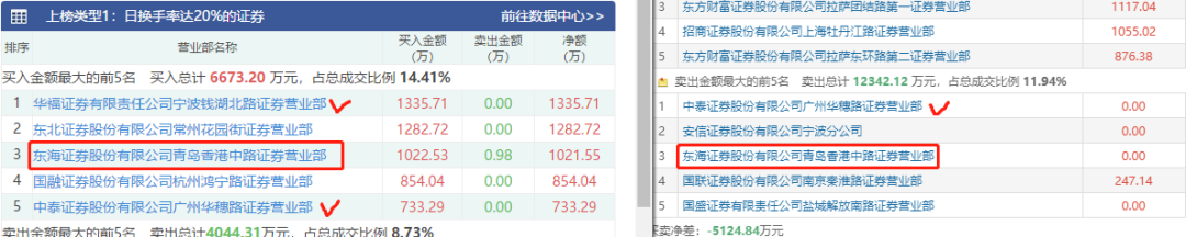 上周我说伊戈尔像次新那波的征和工业,主要走势特征几乎完全一样,现在正好有最近两天出龙虎榜了,看一下他们的席位比照: