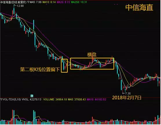 2、在下跌趋势中构成的底部孕育线,第二根小K线实体位于第一根大 K线实体的较下端,随后可能出现横向的走向,股价未必能做急促反弹回升。